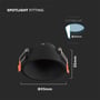 Sort downlight til indbygning med en diameter på 9 cm og et hulmål på 8,3 cm. Velegnet til MR16 eller GU10 fatninger.
