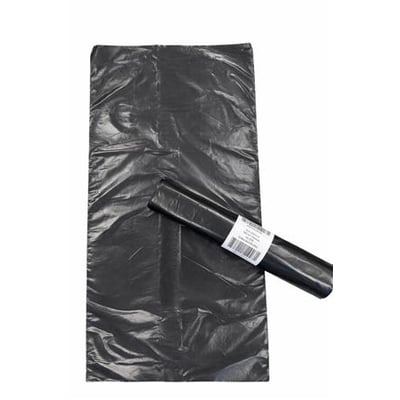 Sorte affaldssække i LDPE genanvendt plast, 55 my. Mål: 70 x 110 cm, kapacitet 110 L. Ideelle til affaldshåndtering og opbevaring. 20 ruller pr. kasse.