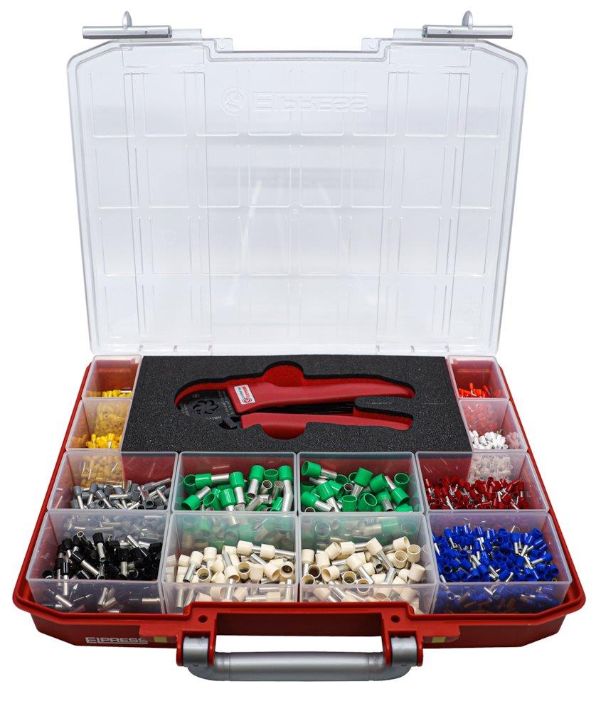 Komplet sortimentskasse til elektrikere, der ønsker orden. Indeholder 1800 terminalrør (0,5-16 mm²), presseværktøj PEB0116H og afisoleringsværktøj SCT001.