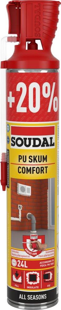 Soudafoam Comfort er en brugervenlig, enkomponent polyurethan skum, der udvider sig selv. Det patenterede Genius Gun system sikrer en enkel og præcis påføring. Doseringsrøret kan forsegles, så du kan fortsætte påføringen fra en delvist fyldt dåse, selv op til 6 uger efter første brug.