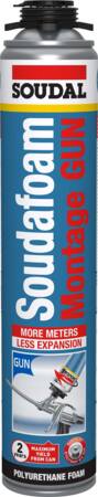 Soudafoam Montage Gun Low Expansion er en 1-komponent, selvekspanderende polyurethan skum, klar til brug. Drivmidlet er HCFC- og CFC-frit og skader ikke ozonlaget. Dåsen er udstyret med en forskruning, så den kan anvendes med pistol.Egenskaber