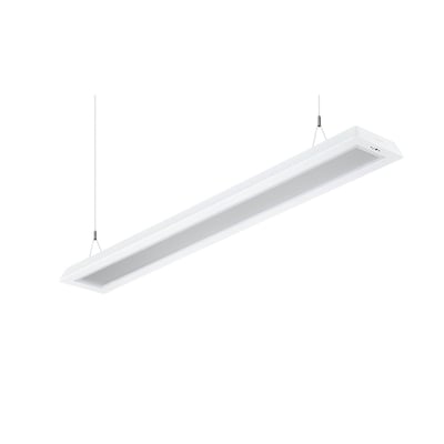Dette slanke, nedhængte armatur leverer behageligt og blændfrit lys, der overholder standarderne for kontorbelysning. Armaturhuset er udført i hvidlakeret stål og er designet til både individuel anvendelse og som lyslinjer.