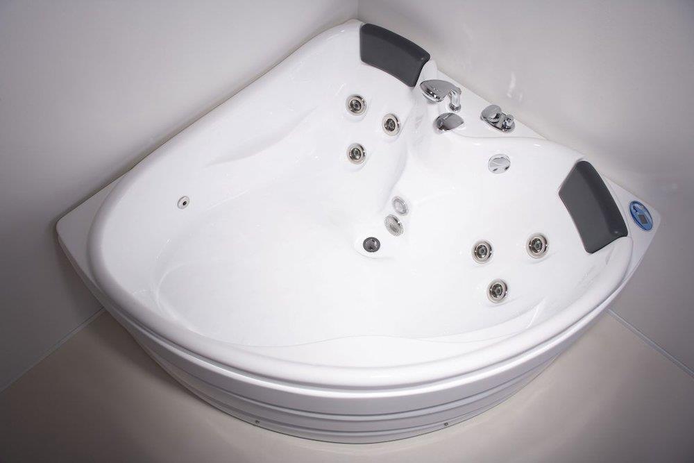 2 personers spabad med ergonomisk design og justerbar vandmassage. Udstyret med 6 store massagejets til ryg, nakke og lænd samt 2 jets til lægmassage.