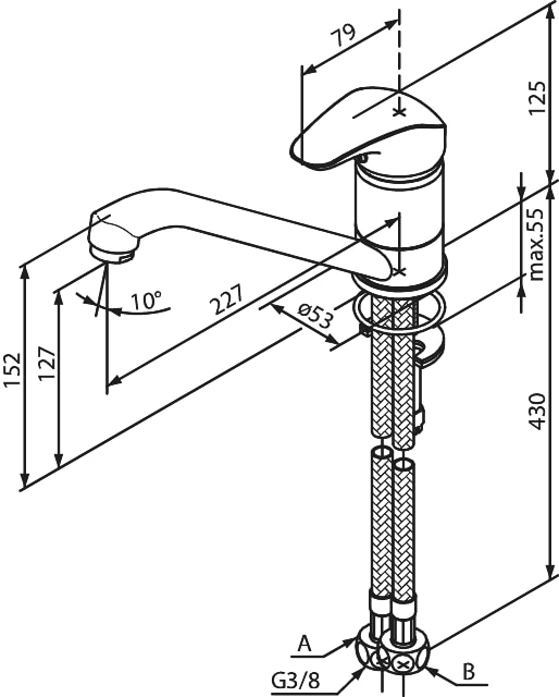 Tilslutning:Flexslanger (G⅜" omløber)