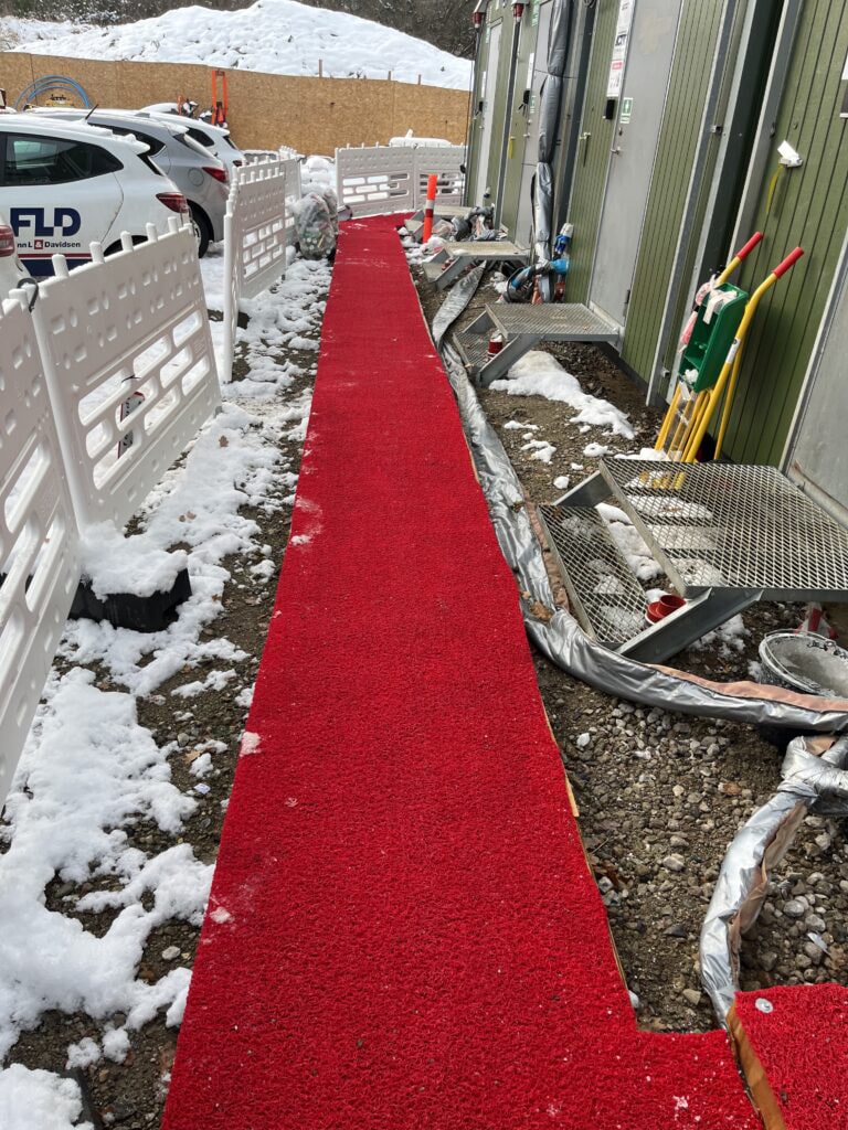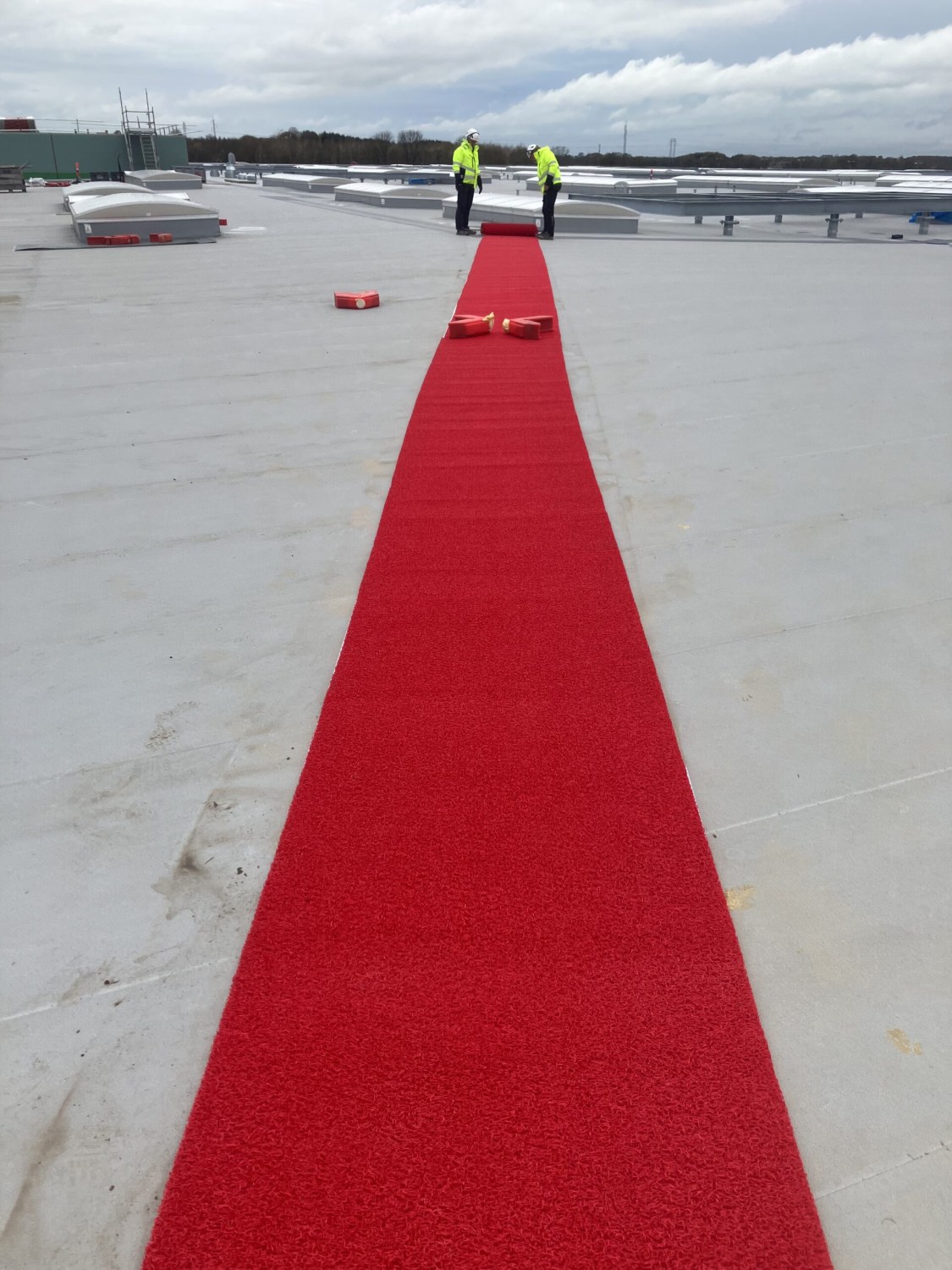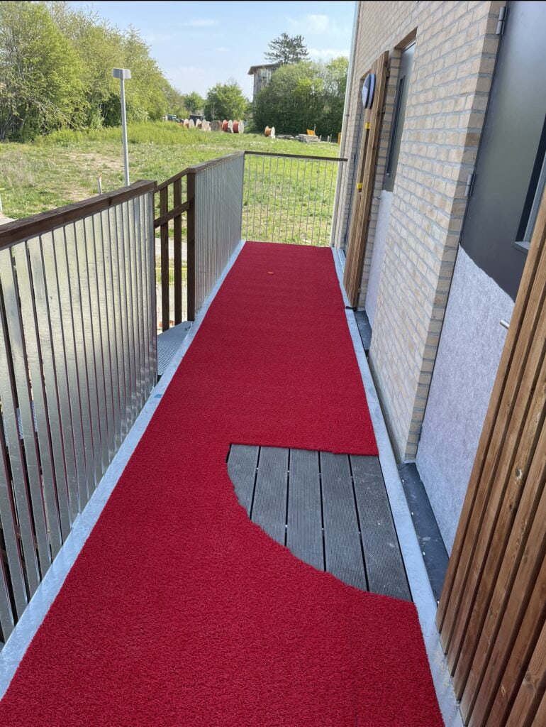 Måtten har en størrelse på 1 x 15 meter og en tykkelse på 14 mm, hvilket gør den velegnet til områder med høj trafik. Den røde farve giver et visuelt løft og passer ind i mange forskellige miljøer.