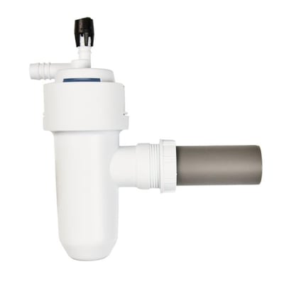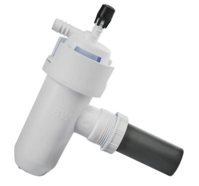Specialvandlås fra BWT til nem installation af AQA basic, AQA life og BWT Perla-serien. Med tilslutninger for afløbsslange, overløbsslange og rør.