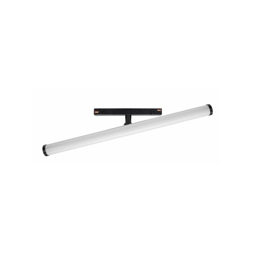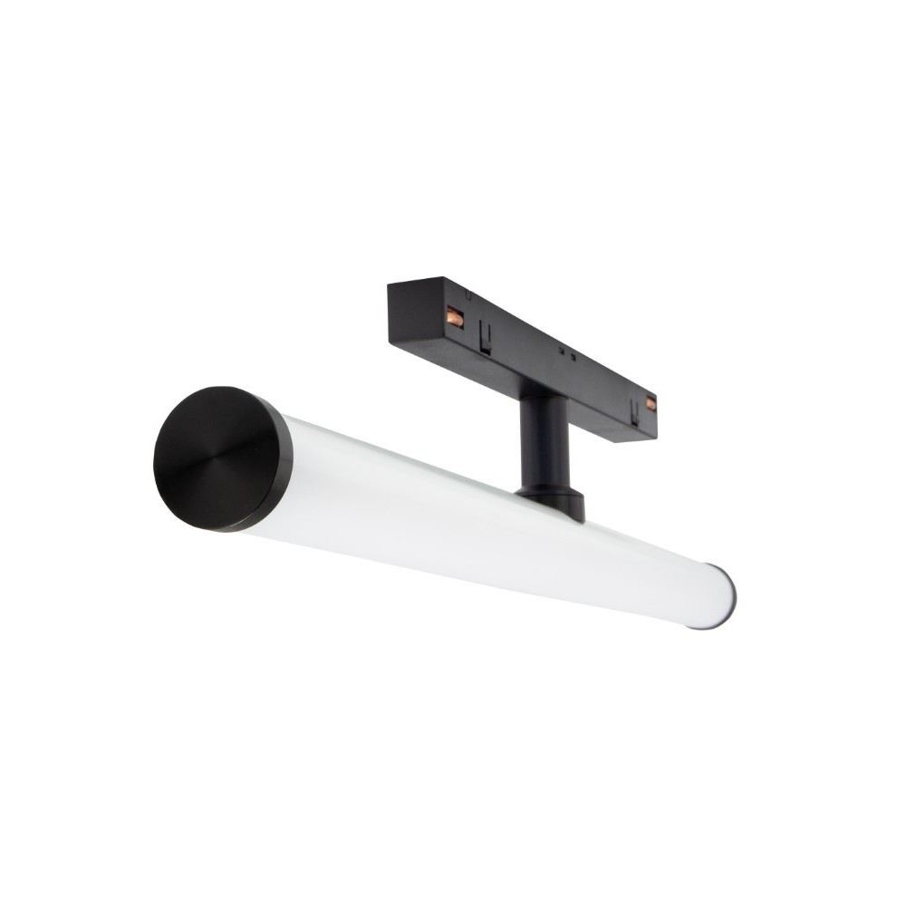 Spectrum SHIFT Beam 12W er en sort, 40 cm lang lyskilde designet til effektiv belysning. Med en effekt på 12W og en lysstyrke på 1400 lumen leverer den et kraftigt og jævnt lys med en spredningsvinkel på 150 grader. Lyskilden tilsluttes en 48V DC forsyning.