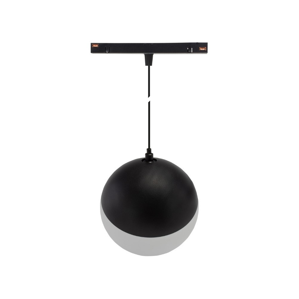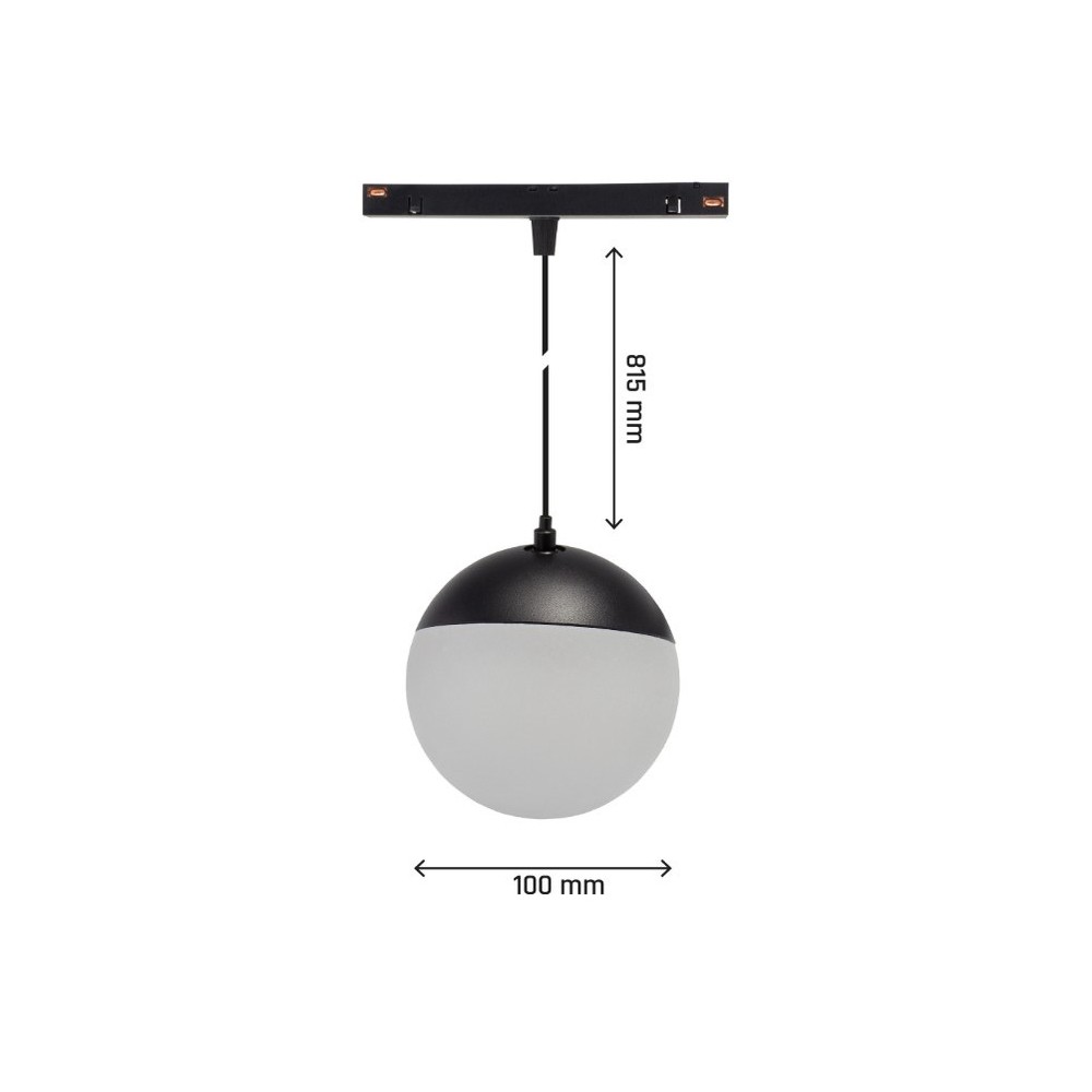 Spectrum SHIFT Globe P er en elegant sort lampe med en diameter på 10 cm og et strømforbrug på 5W. Lampen opererer på 48V DC, hvilket sikrer en stabil og energieffektiv drift.