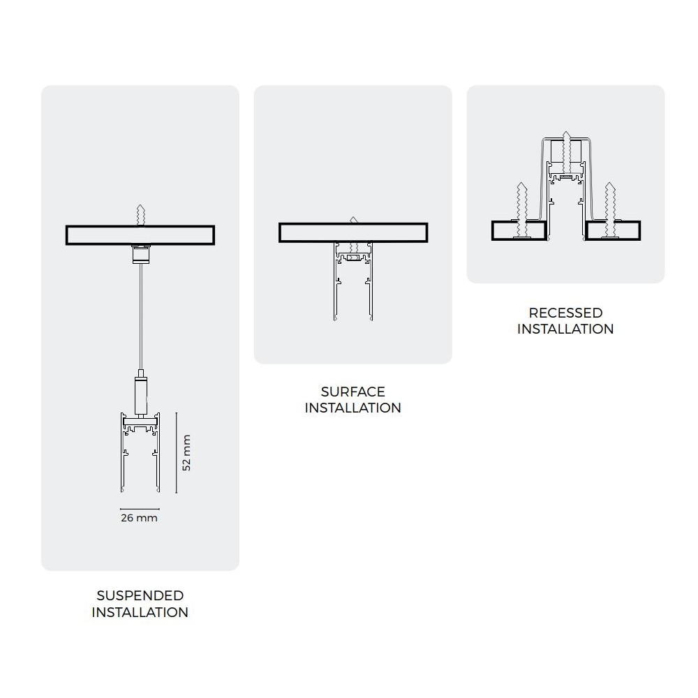 Denne 2 meter lange skinne er en essentiel del af Spectrum SHIFT systemet. Den leveres i en neutral hvid finish, der nemt integreres i forskellige indretninger.
