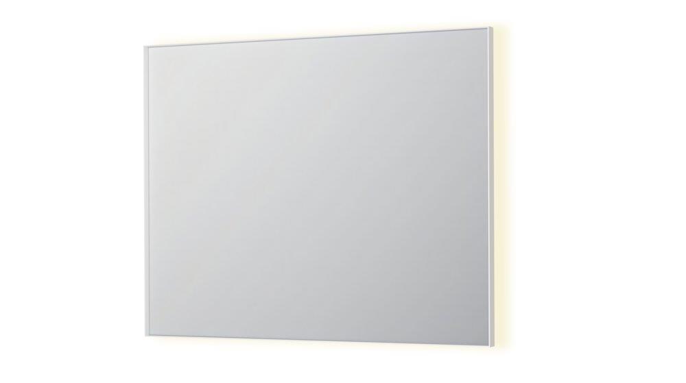 Sanibell INK SP32 rektangulært spejl, 100x80 cm, med mathvid aluramme, indirekte dæmpbar LED-belysning, farveskift (3000-6000K), spejlvarme, sensorkontakt og memory funktion.