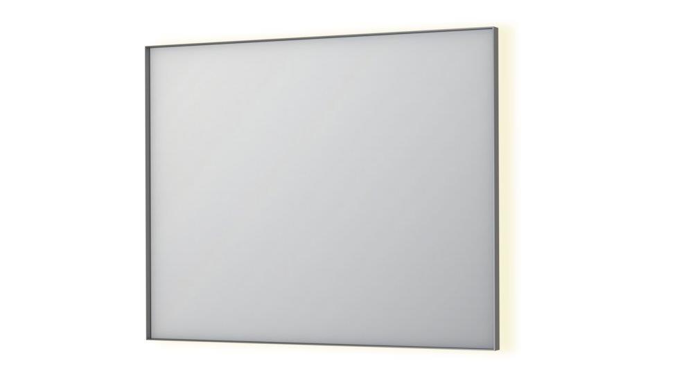 Sanibell INK SP32 rektangulært spejl, 100x80 cm, med børstet rustfri aluramme, dæmpbar LED-belysning, farveskift, spejlvarme og sensorkontakt.