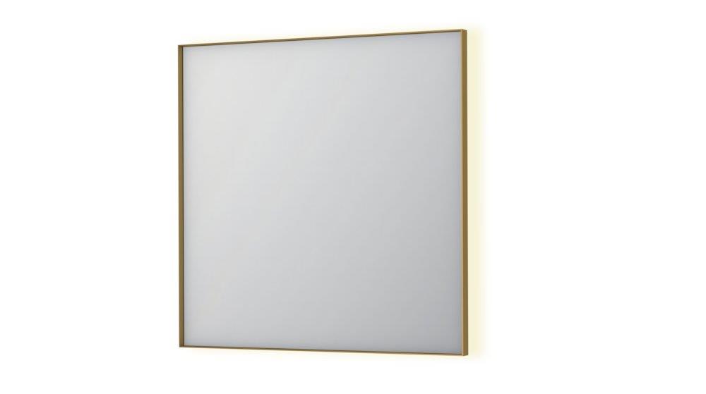 Sanibell INK SP32 rektangulært spejl, 80x80cm, med børstet mat guld aluramme, dæmpbar LED-belysning, farveskift, spejlvarme og sensorkontakt.