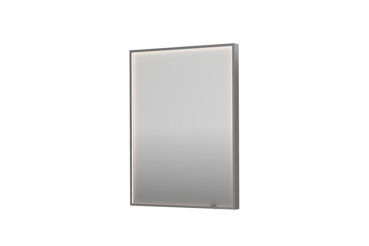 Sanibell INK SP19 rektangulært spejl, 60 x 80 cm, med børstet rustfri aluramme, dæmpbar LED-belysning, farveskift (3000-6000K), spejlvarme, sensorkontakt og memory funktion.