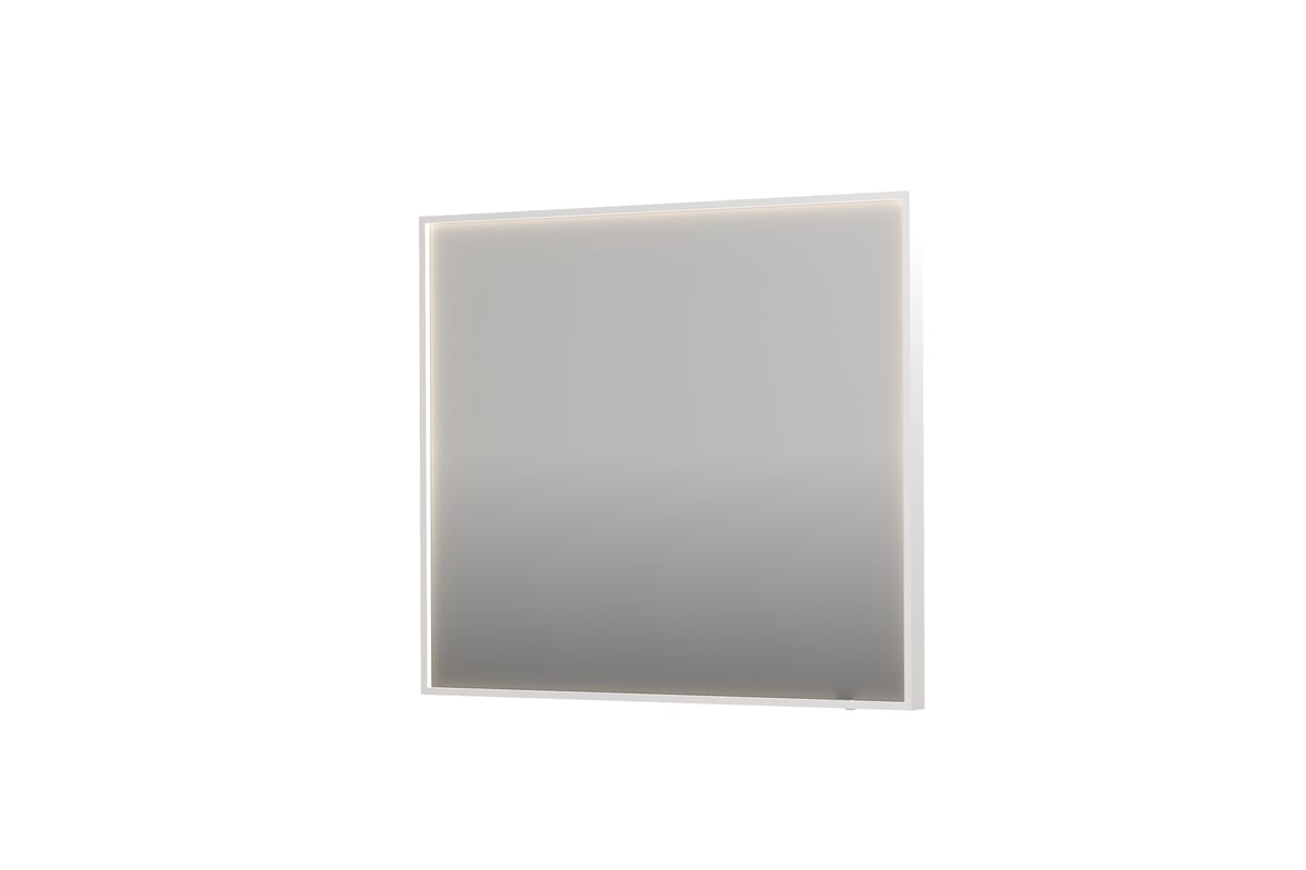 Sanibell INK SP19 rektangulært spejl, 90 x 80 cm, med mathvid aluramme. Med dæmpbar LED-belysning, farveskift (3000-6000K), spejlvarme, sensorkontakt og memory funktion.