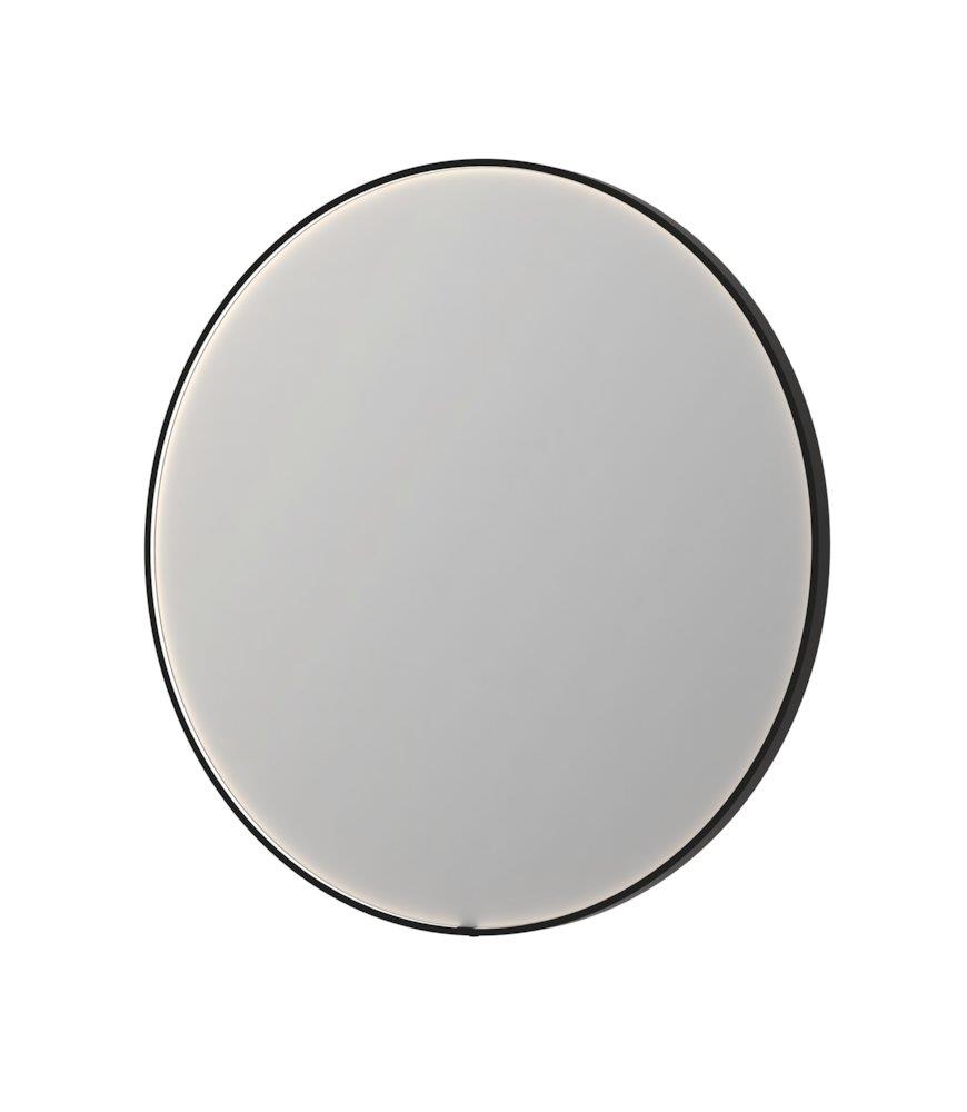 Rundt Sanibell INK SP24 spejl, Ø100, med børstet metal, sort aluramme, dæmpbar LED-belysning, farveskift (3000-6000K), spejlvarme, sensorkontakt og memory funktion.
