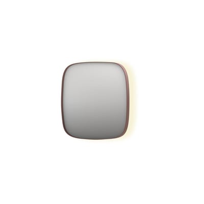 Sanibell INK SP30 superellipse spejl, 60x60 cm, med børstet kobber aluramme, dæmpbar LED-belysning, farveskift (3000-6000K), spejlvarme, sensorkontakt og memory funktion.