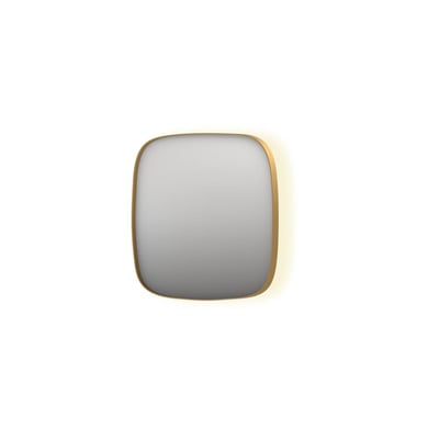 Sanibell INK SP30 superellipse spejl, 60x60 cm, med børstet mat guld aluramme, dæmpbar LED-belysning, farveskift (3000-6000K), spejlvarme, sensorkontakt og memory funktion.