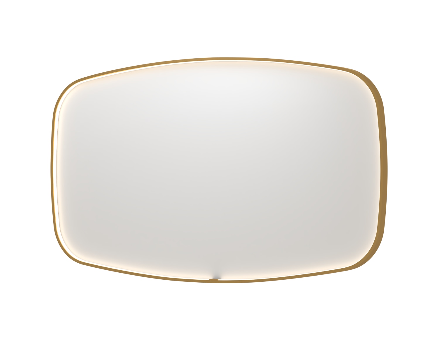 Sanibell INK SP31 superellipse spejl, 140x80 cm, med børstet mat guld aluramme, dæmpbar LED-belysning, farveskift, spejlvarme, sensorkontakt og memory funktion.