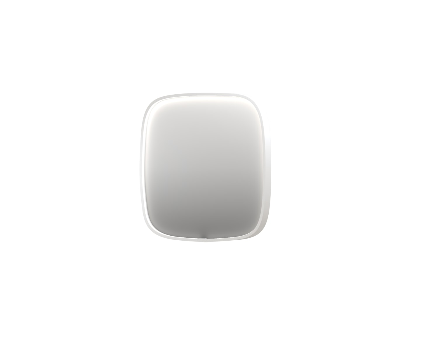 Sanibell INK SP31 superellipse spejl, 40x40 cm, på mathvid aluramme med direkte dæmpbar LED-belysning, farveskift (3000-6000K), spejlvarme, sensorkontakt og memory funktion, så det husker dine indstillinger. Spejlet kan monteres lodret og vandret.