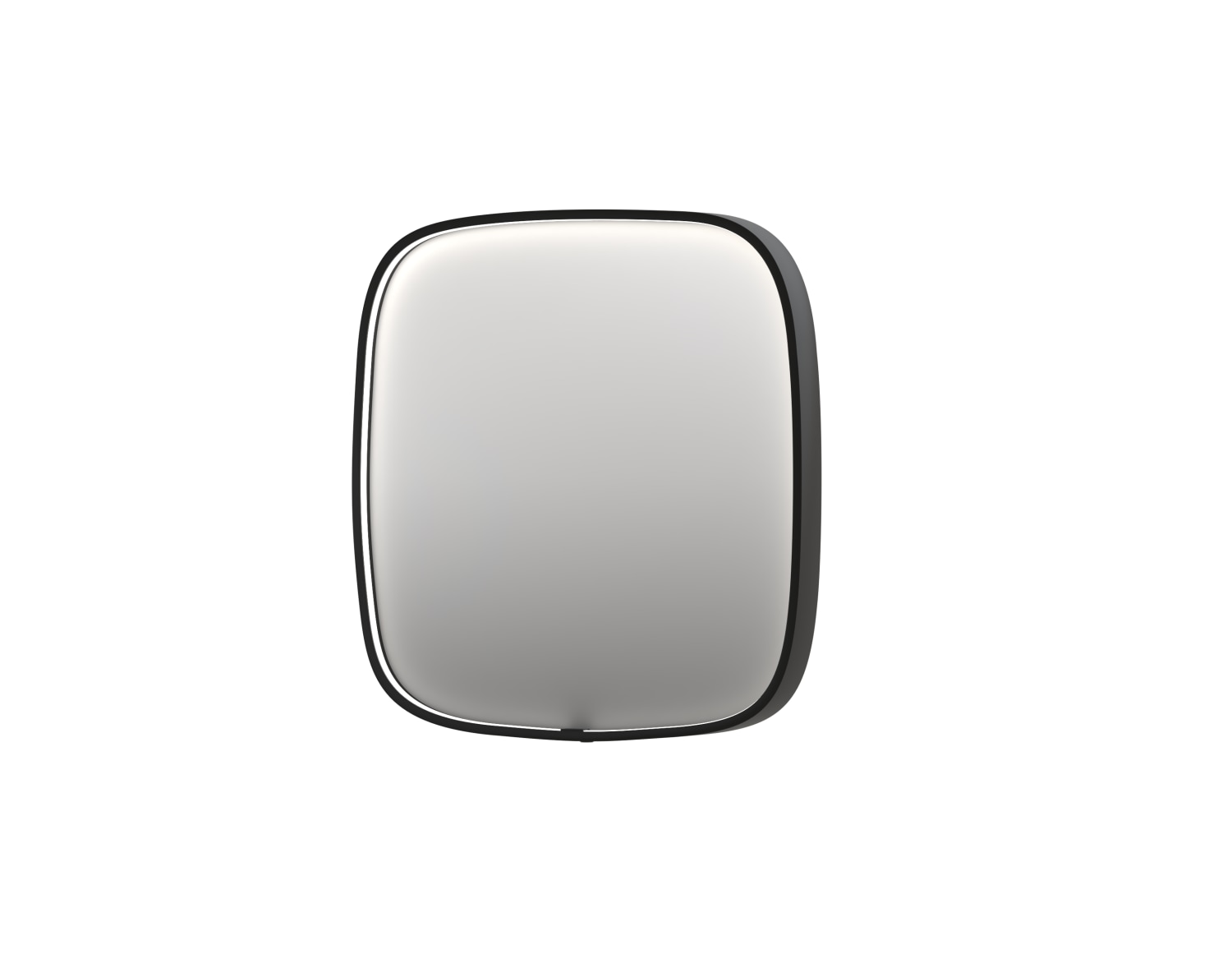 Sanibell INK SP31 superellipse spejl, 80x80 cm, med sort aluramme, dæmpbar LED-belysning, farveskift (3000-6000K), spejlvarme, sensorkontakt og memory funktion.