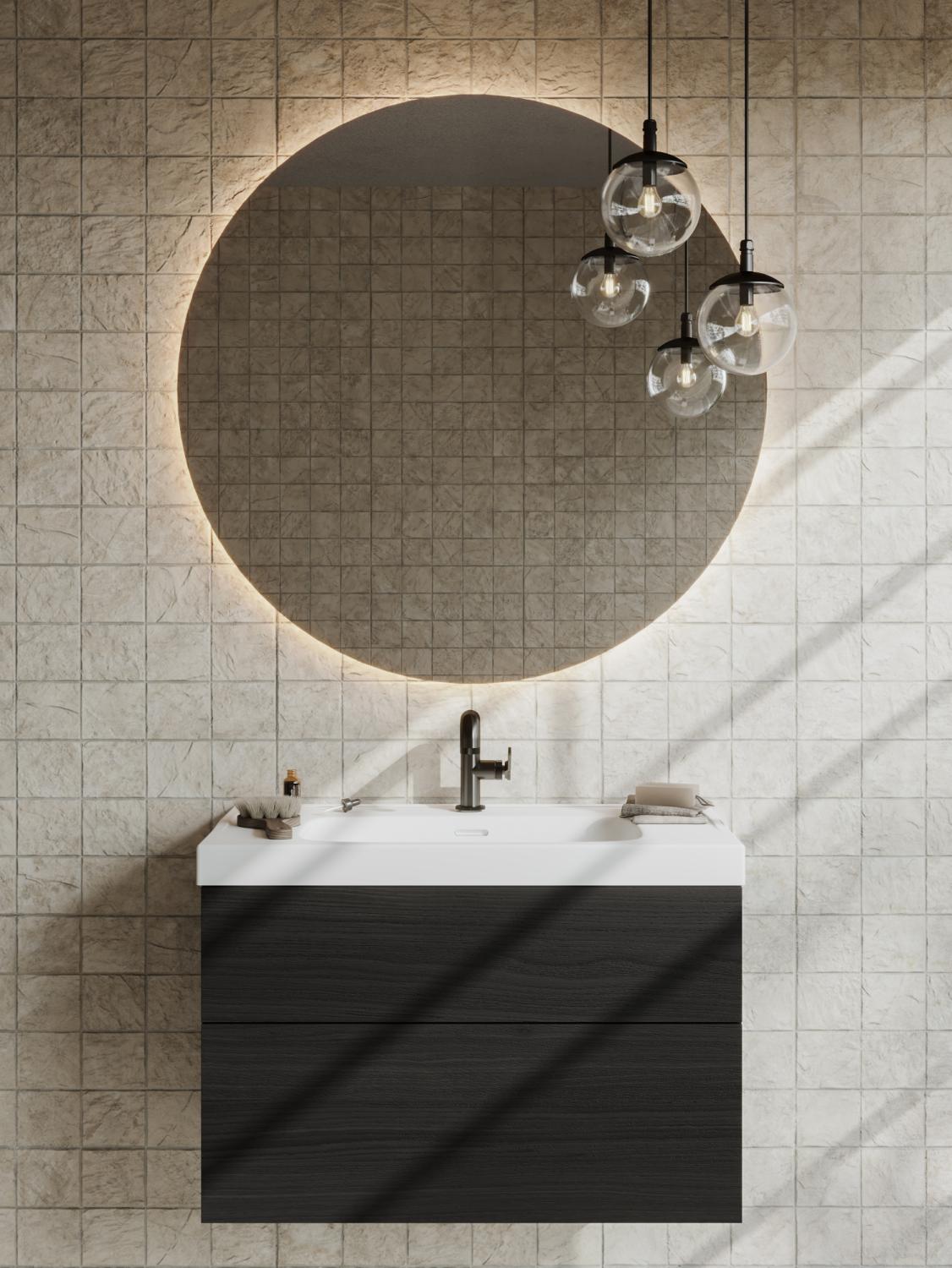 Valje spejlet tilbyder et atmosfærisk backlight, der skaber et behageligt Gloria-lys i badeværelset. Med en diameter på 80 cm og et klassisk rundt design, passer det ind i de fleste moderne hjem.