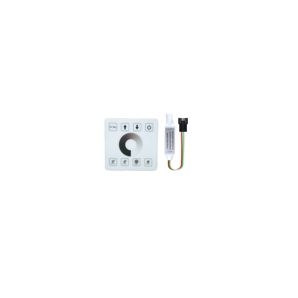 Denne SPI løbelys controller tilbyder en avanceret løsning til styring af belysning med løbelyseffekter. Den leveres med en brugervenlig touch fjernbetjening, der kommunikerer trådløst via 2,4 GHz-teknologi, hvilket giver en stabil og responsiv kontrol over dine lysinstallationer.