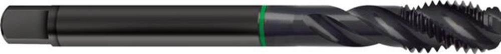 HSS-E dampbehandlet højre skærende spiraltap med grøn ring. Maskinsnittap med 2-3 gevind ansnit form C. Til bundhuller med metrisk ISO-fingevind DIN 13.