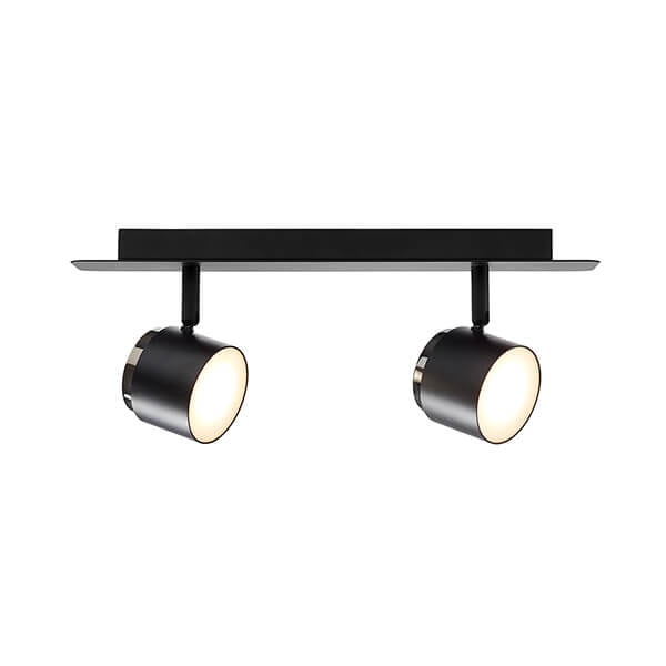 Elegant loftspot med indbygget LED-lys. Justerbare spots giver et varmt lys, præcis hvor du har brug for det. Denne model har 2 spots.