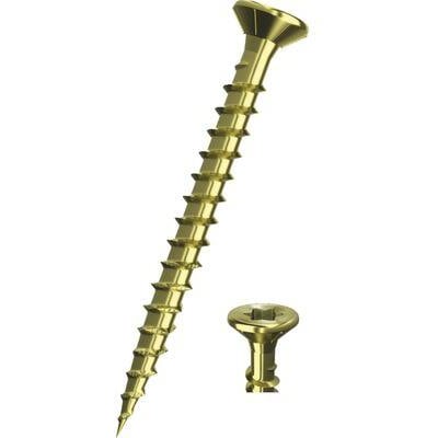 Universal spånskrue 3,5x16mm med T15 kærv. Undersænket hoved med fræseribber, fuld gevind og gul chromateret overflade.