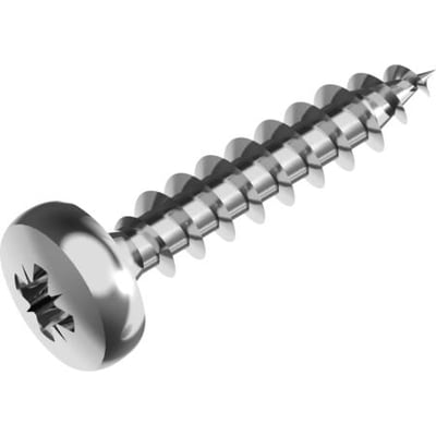 Spunskrue med panhoved, PZ Pozidriv krydskærv og fuld gevind. Fremstillet i rustfri A2 stål i henhold til WS 9110 standarden.