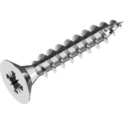 Spunskrue med undersænket hoved, PZ pozidriv krydskærv og fuld gevind. Rustfri A2 WS 9100.