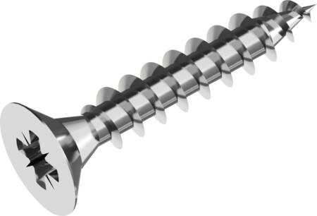 Med sit undersænkede hoved giver skruen en pæn og diskret finish. PZ2 pozidriv kærv sikrer optimal kraftoverførsel og reducerer risikoen for at skruen glider ud under montering.