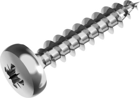 Spunskrue med panhoved, PZ Pozidriv kærv og fuld gevind. Rustfri A2, WS 9110.