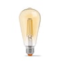 Dæmpbar ST64 LED-pære med E27 fatning. 6W, 550lm, ekstra varm hvid (2700K) lysfarve og ravfarvet glas.