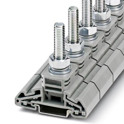 Stærkstrømsklemme med bolttilslutning. Bredde: 32 mm, Højde: 73,5 mm, grå. Til montering på NS 35/7,5 og NS 35/15.