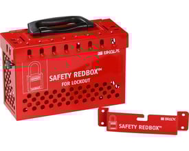 Stål lockout hasp af hærdet stål med rustfast belægning og rød vinyl. Maks. diameter 9,53 mm på låsebøjle.