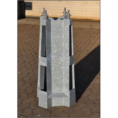 NIPA galvaniseret stålfundament er til nedgravning og montering af master med fodflange, størrelse 350x350 mm med 250 mm mellem boltene. Fundamentet er egnet til master op til 12 m LPH.