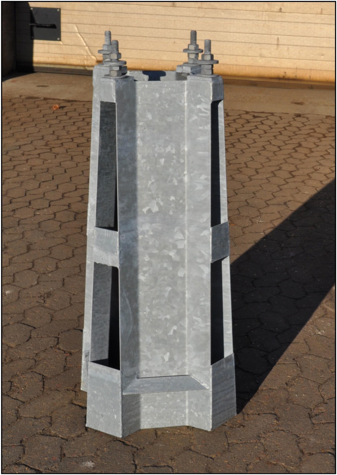 Fundamentet er produceret i 3 mm bukket stålplade og galvaniseret.