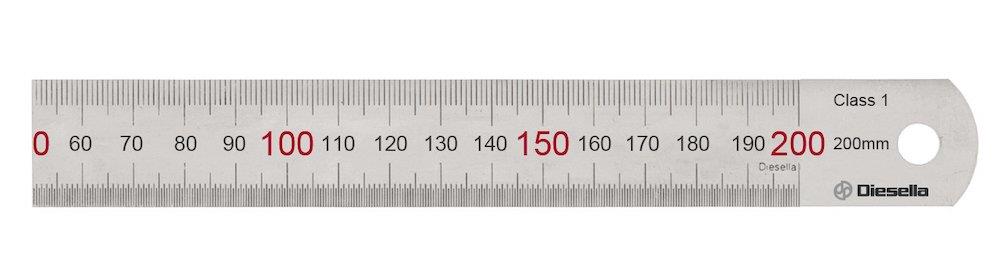 Stållineal, 200x19x0,8 mm, med aflæsning venstre-mod-højre - Diesella