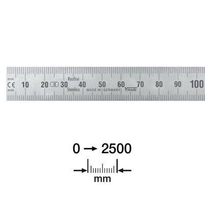 Denne stållineal er udført i fuldhærdet, rustfrit stål, hvilket gør den både fleksibel og holdbar. Den er ideel til præcise målinger i forskellige applikationer.