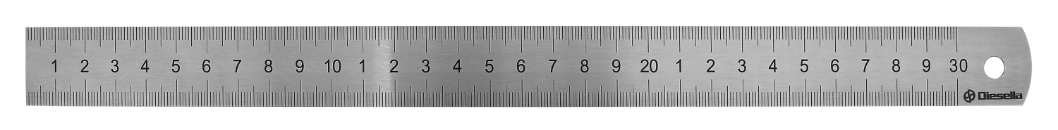 Præcis stållineal på 300 mm med 1/1 mm graduering i top og bund. Ideel til måling med aflæsning fra venstre mod højre.