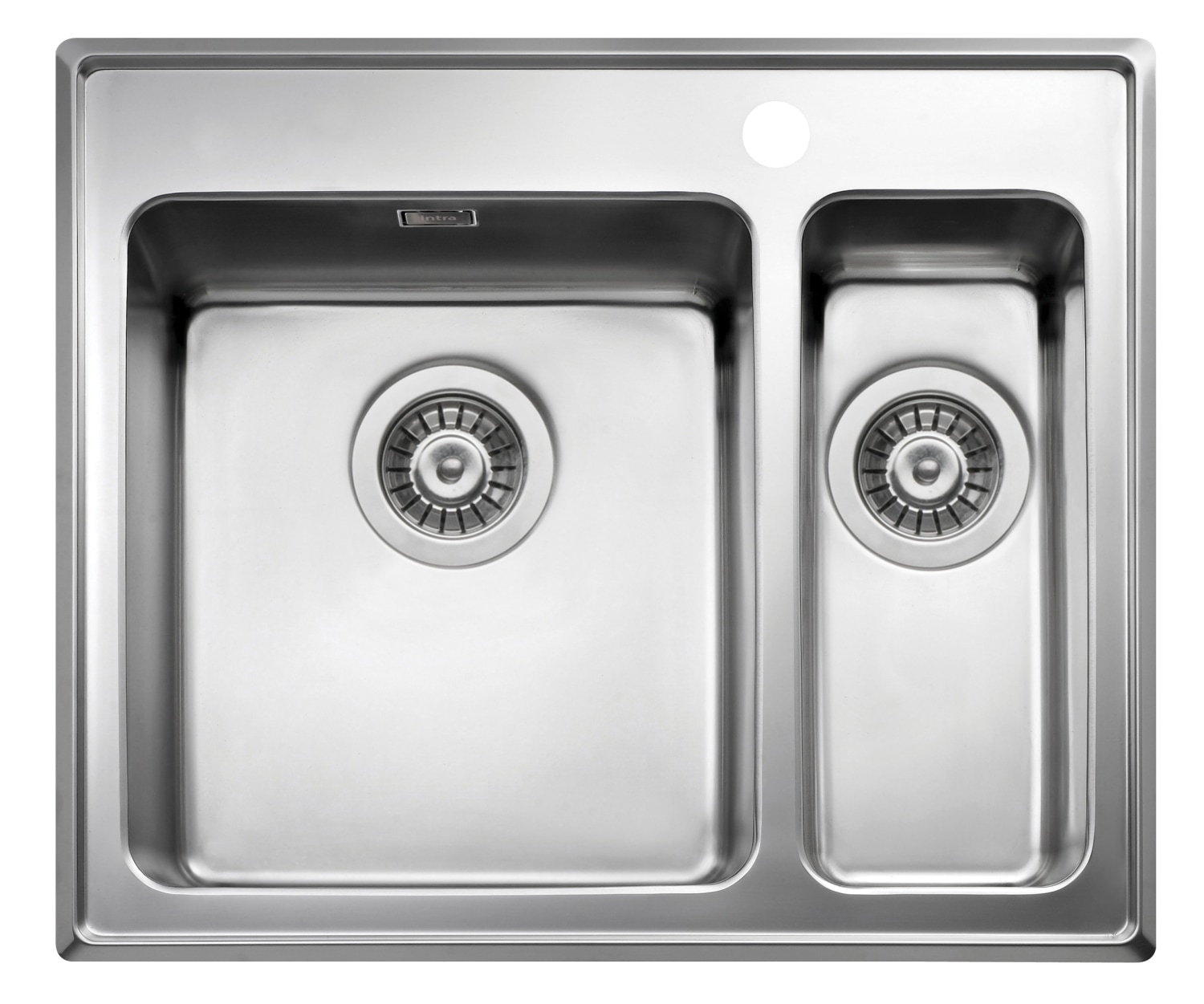 Vasken er udstyret med en stor og en lille kumme, der giver fleksibilitet i hverdagen. Den store kumme inkluderer en manuel strainer og overløb, mens den lille kumme ligeledes leveres med en manuel strainer. En vandlås medfølger for nem installation.