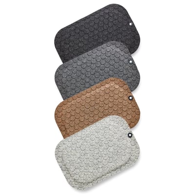 Måtten er både dæmpende og aflastende. Med en pæn tekstiloverflade i flere diskrete farver, falder den godt ind i miljøet på kontorer, i receptioner og i butikker.