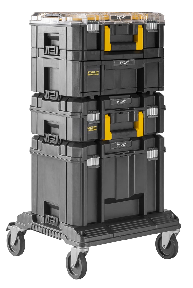 Stanley Fatmax PRO-STACK opbevaringssæt. Kan stables og låses sammen med hjul. 5 enheder.