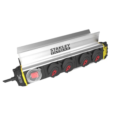En 4-vejs stikdåse fra STANLEY FATMAX® med 3 meter kabel og IP44-klassificering for stænktæthed.