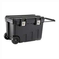 Mobil værktøjskasse med teleskophåndgreb, kraftige hjul og rustbestandige metalåse. Ideel til opbevaring og transport af værktøj og udstyr. Kapacitet: 91 liter.