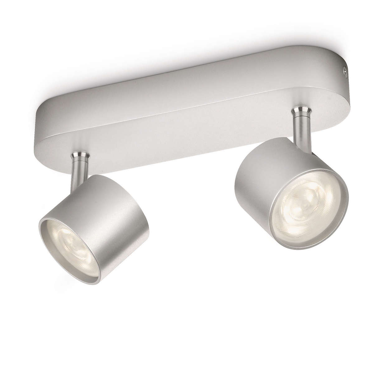 Skab den rette atmosfære med Philips Star dobbelt spot. Denne dæmpbare LED spotlampe giver dig mulighed for at justere lysstyrken efter behov, uanset om du har brug for klart lys til hverdagens opgaver eller blødt lys til afslapning.