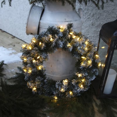 Edmonton Gran Krans med sne fra Star Trading. 50 cm med 30 LED.