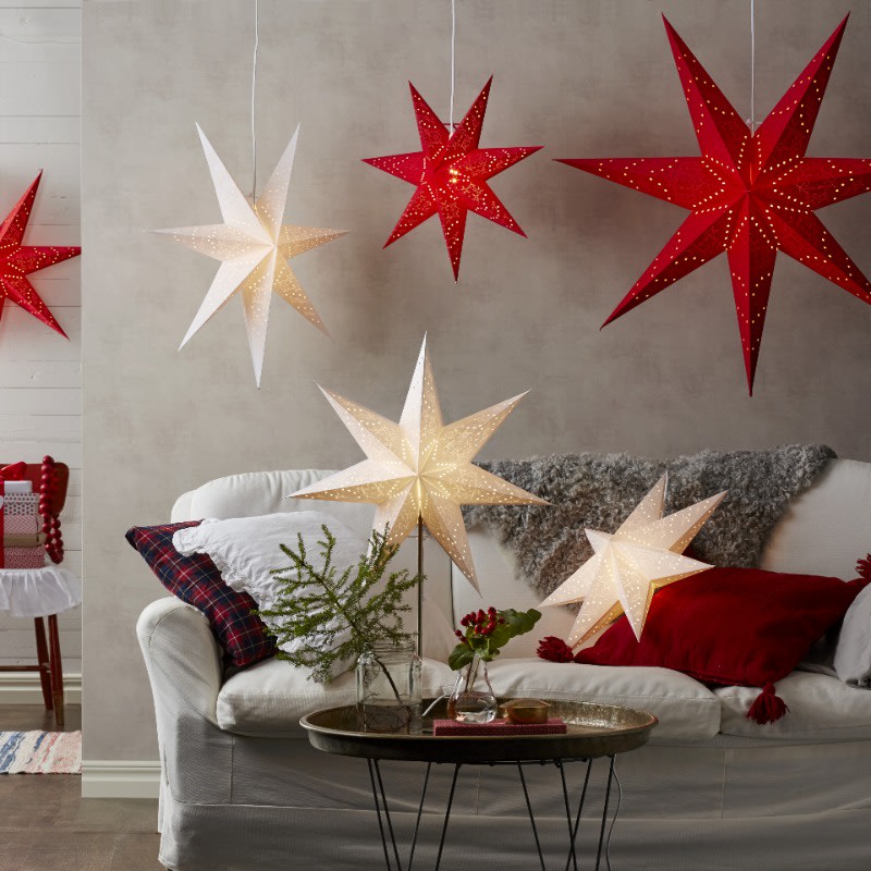 Skab en hyggelig julestemning med denne røde papirstjerne fra Star Trading. Perfekt til indendørs brug.
