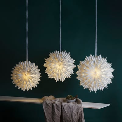 Snow papirstjernen er nem at hænge op og tilslutte. Bemærk, at lyskilde ikke er inkluderet.